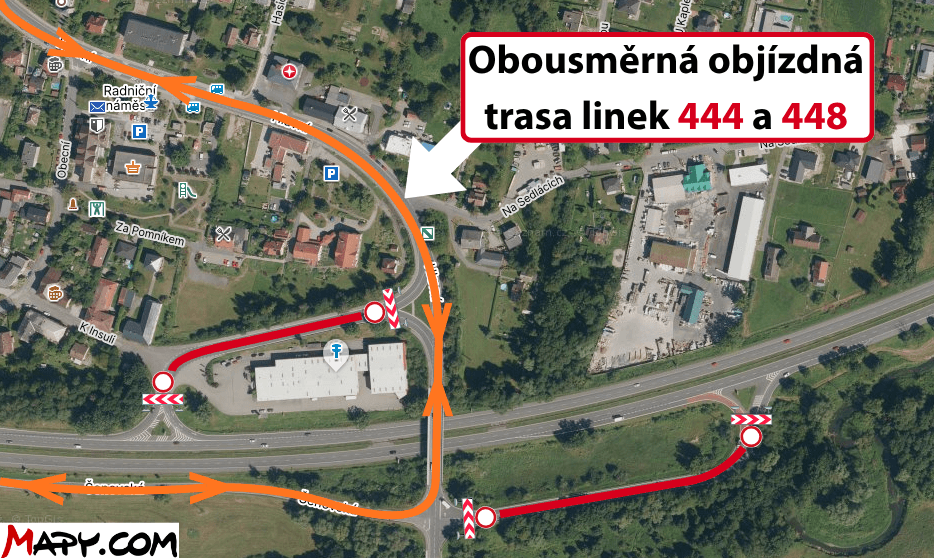 Dočasná změna tras linek 444 a 448