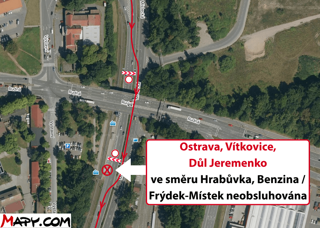 - ve směru do Hrabůvky/Frýdku-Místku nebude zastávka obsluhována