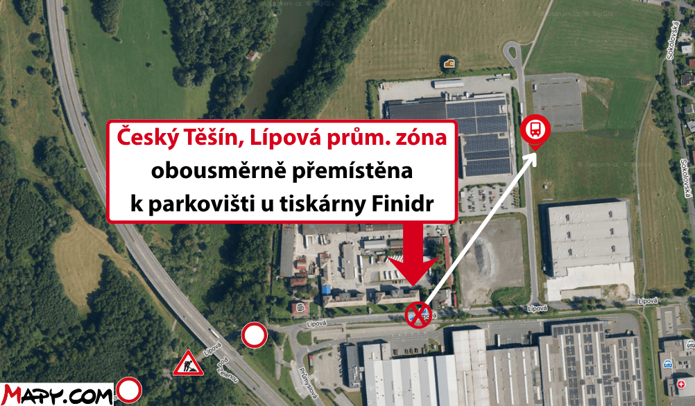 Dočasné přemístění autobusové zastávky Český Těšín, Lípová prům. zóna