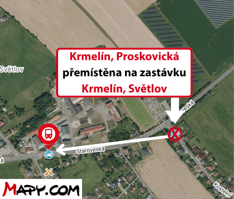 - přemístěna na autobusovou zastávku Krmelín, Světlov